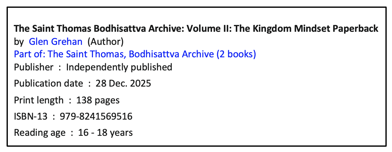 This is Glen Grehan’s second book in his series The Saint Thomas, Bodhisattva Archive and the author states that some of the content of his first book (Book 1) is repeated in this second publication. Having read Volume 1, I can confirm this to be the case.